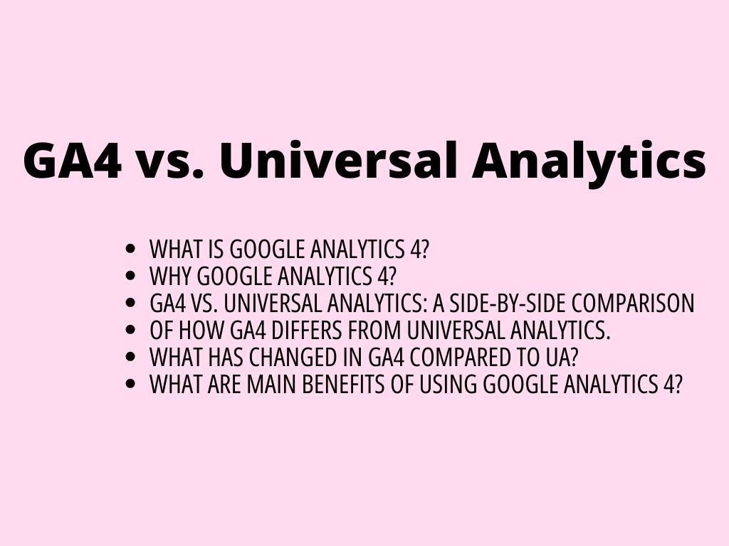 What is Google Analytics 4? GA4 vs. Universal Analytics: A side-by-side comparison and how does it differ from Universal Analytics? 2.part