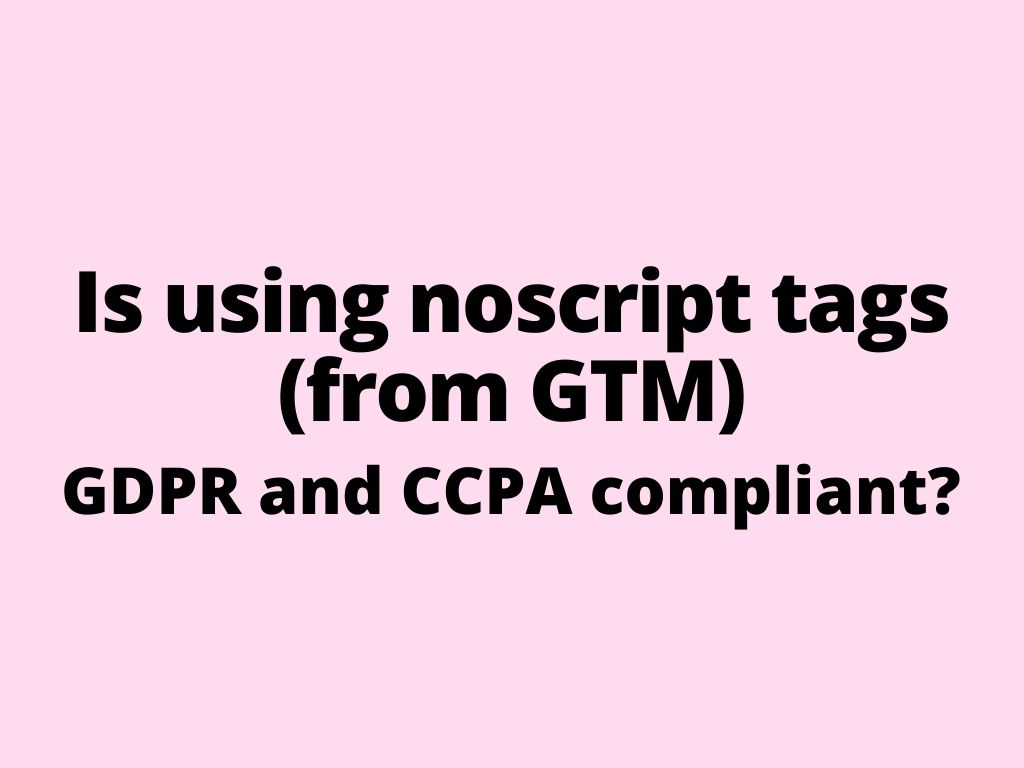 No, noscript tags are not GDPR or CCPA compliant by default. These tags are designed to function when JavaScript is disabled, meaning they bypass JavaScript-based cookie consent tools. Since you cannot control or block noscript tags without JavaScript, they run automatically, potentially without user consent, which violates privacy regulations/GDPR. To ensure your website is compliant, you should remove all noscript tags in third-party scripts, such as those in GTM, Facebook Pixels, to prevent unregulated tracking.