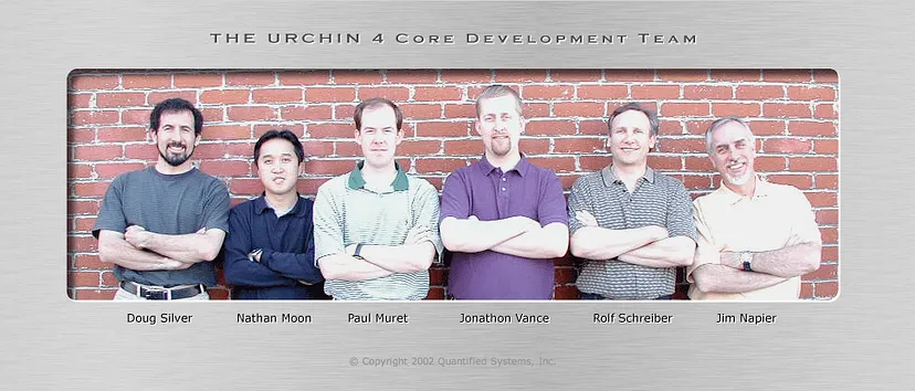 Urchin 4 had an easter egg that no one ever found. If you clicked a random “rivet” in the sexy brushed aluminum interface, you’d be treated to a photo of the illustrious Urchin dev team: Doug Silver, Nathan Moon, Paul, Jonathon Vance, Rolf Schreiber, and Jim Napier. Most of these guys are still at Google (date to Aug. 2016).