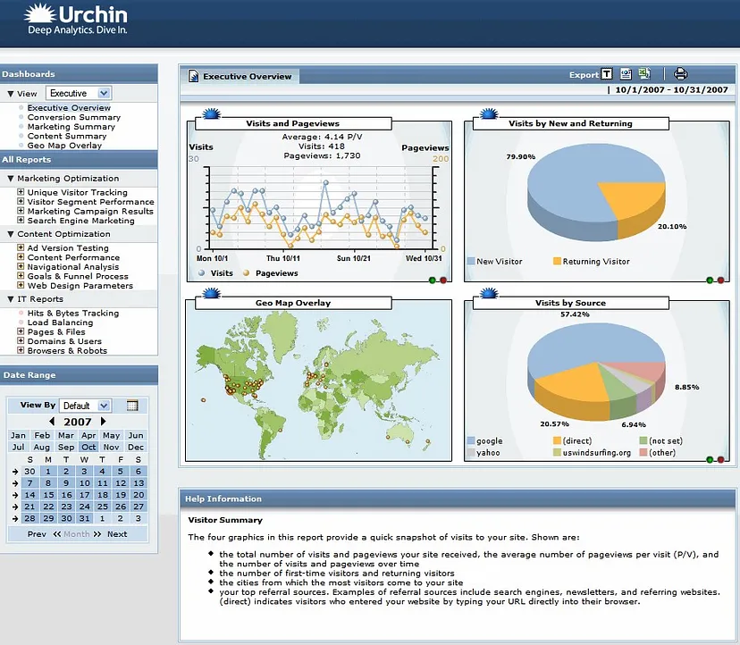 Urchin 7 – The new UI looks very similar to later well-known Google Analytics
