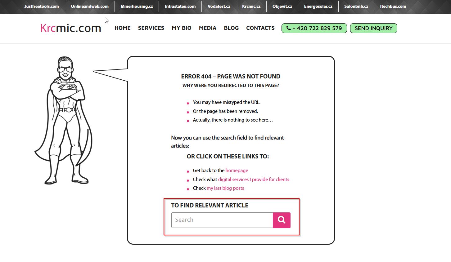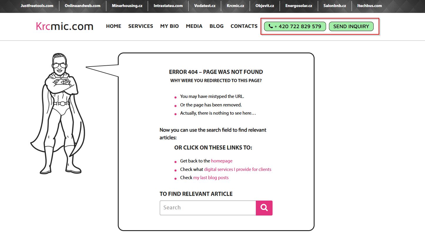 - Search box – if the page is non-existent, a search box allows users to instantly find what they are looking for.