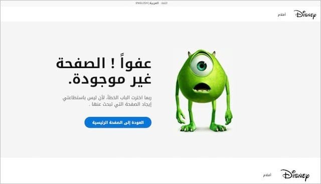🎯 Disney does a fantastic job with this, ensuring their 404 pages are available in multiple languages for their diverse audience.