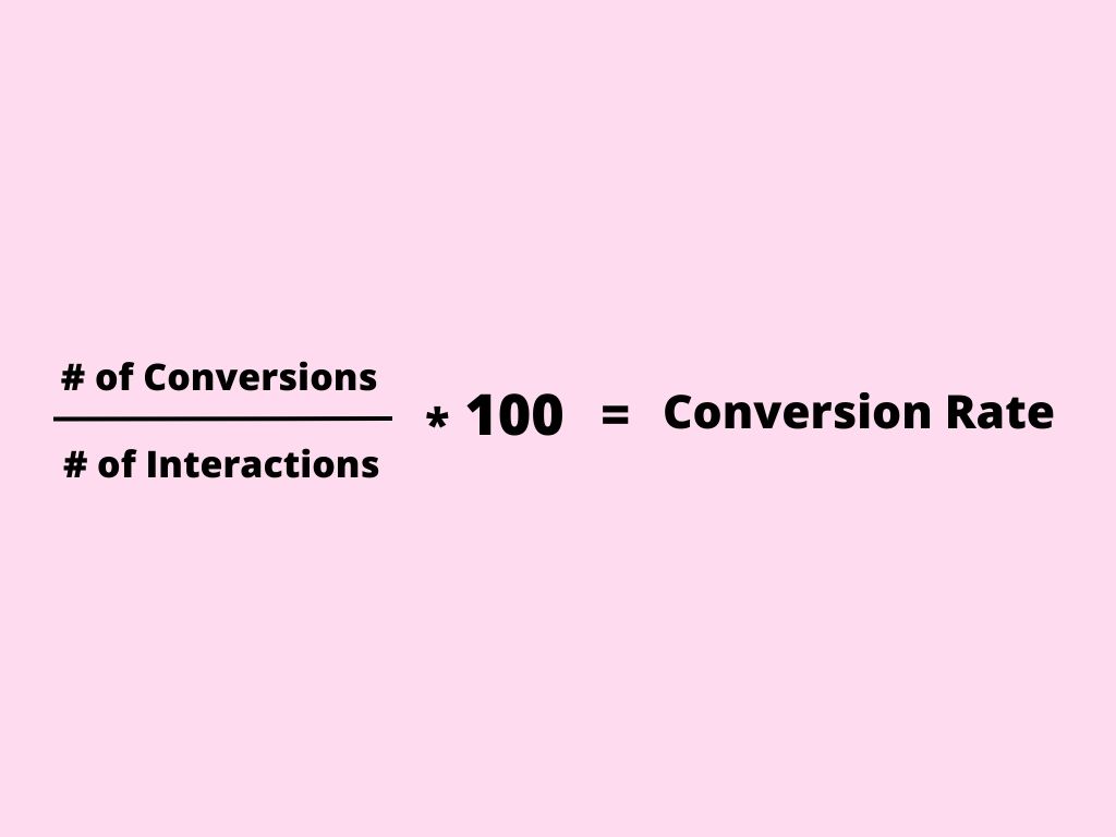 To calculate your conversion rate, take the number of conversions (i.e., users who completed the desired action) and divide it by the number of interactions with your content (e.g., views, opens, clicks). Multiply the resulting fraction by 100 to obtain the conversion rate percentage.