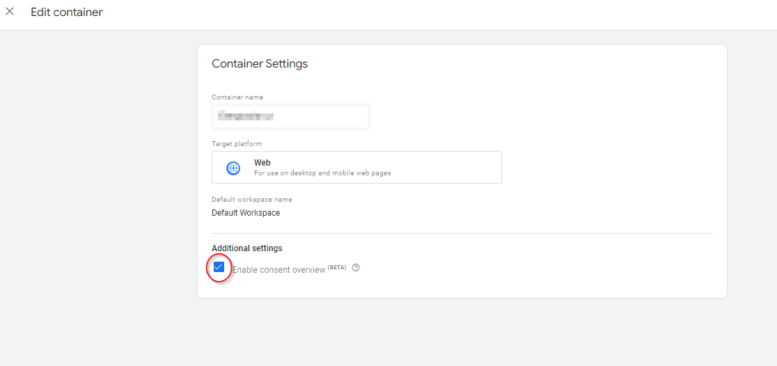 For a complete view of the consent settings across all the tags in your container, you can enable the Consent Overview from your container settings: