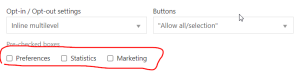 Inline multilevel – Users can opt-in and out of separate cookie categories inside the details banner.