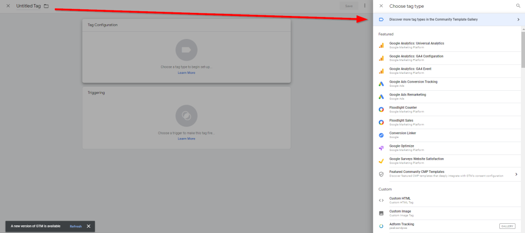 Alternatively, add a new tag and click the “Discover more tag types in the Community Template Gallery” item