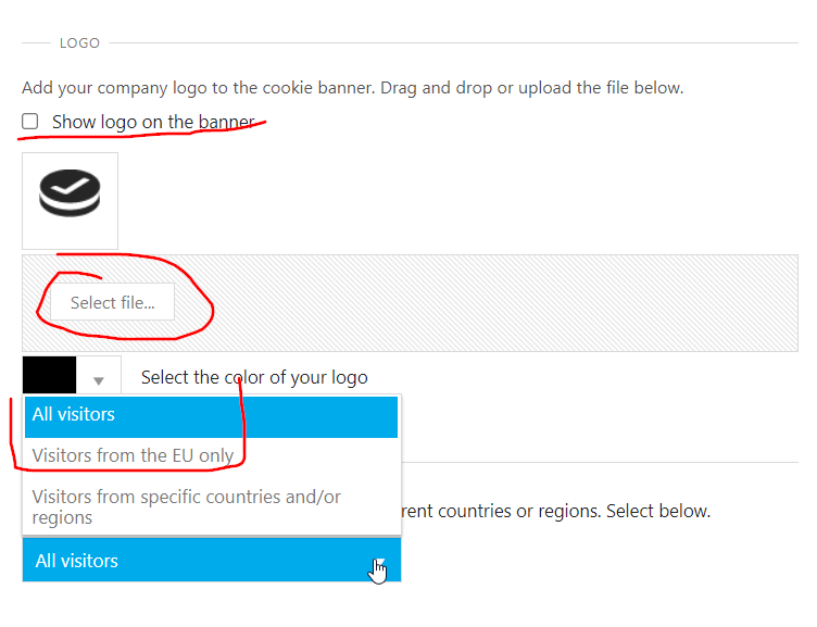 You can also include your logo and set if the cookie banner should be displayed to each visitor or to just EU visitors (where GDPR law is applicable).