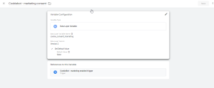 Add all storage categories which the tag requires (see the scan report from Cookiebot if you are in doubt).In this example the tag requires consent for ad_storage / marketing cookies: