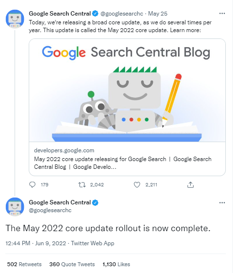 Google May 2022 Core Update Complete
