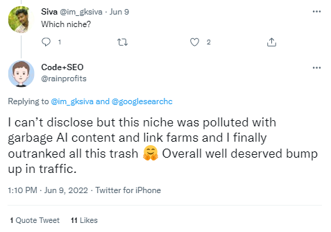 The site owners that his site resides in the niche that is “polluted with garbage AI content”, and he has finally managed to leave his competitors behind.