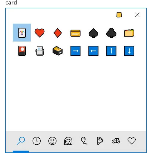 - Windows 10 also has an emoji keyboard to insert the joker emoji symbol. Press “Win + ;” keys to open the emoji keyboard. Search for joker symbol and insert it on your documents.