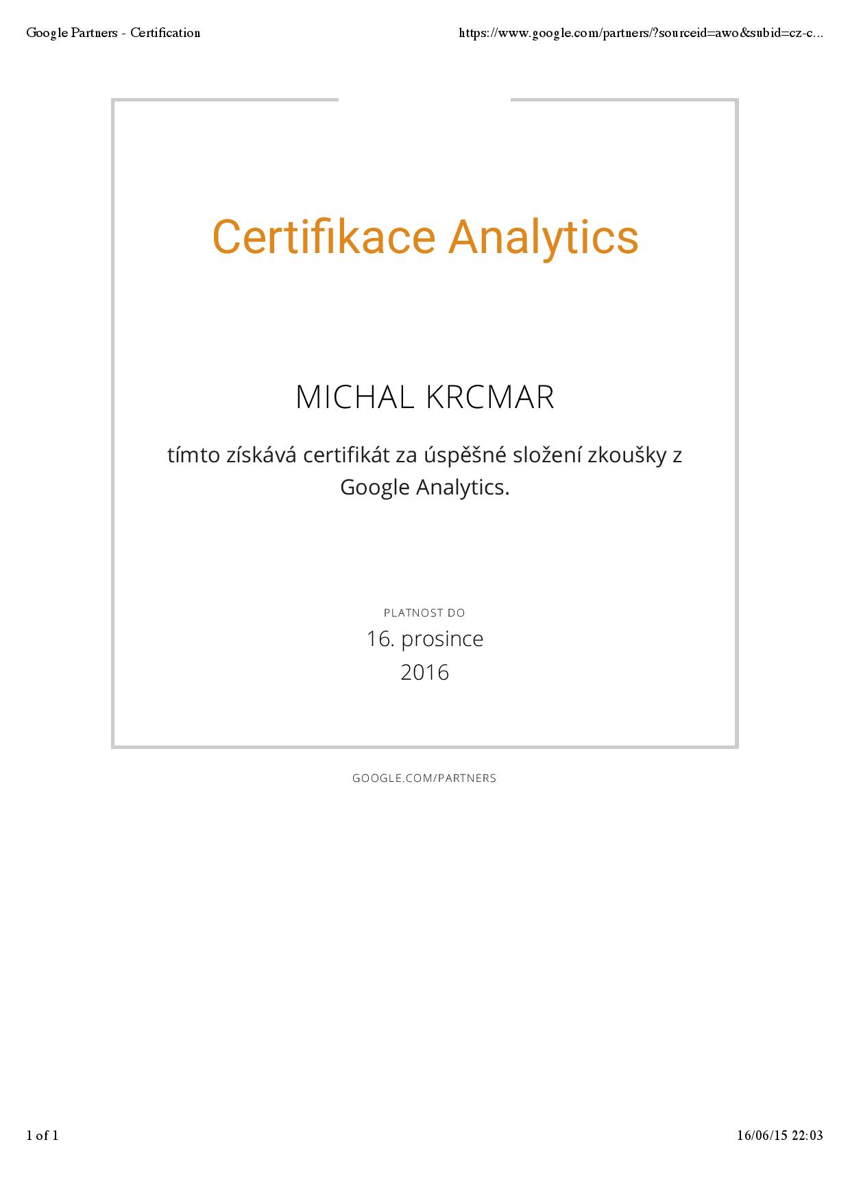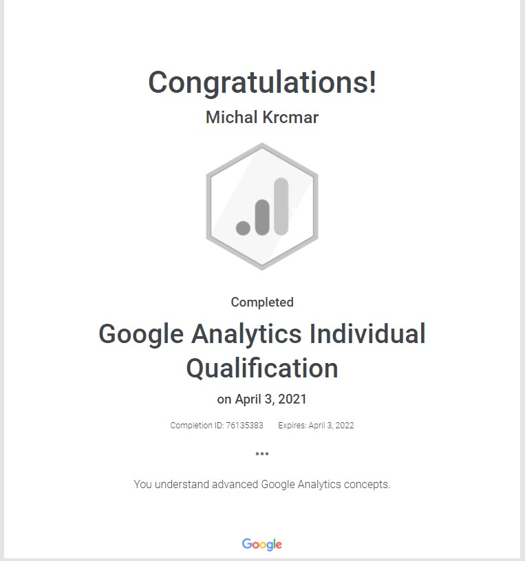 I was working as web analyst since 2012 and this Google Analytics Individual Qualification (GAIQ) was first certification I really wanted to finish (and I did in 2014). In that time it wasn’t for free as it is now and materials were also quite limited (there weren’t people like Simo Ahava – and if they existed, well I did not know them :-)).