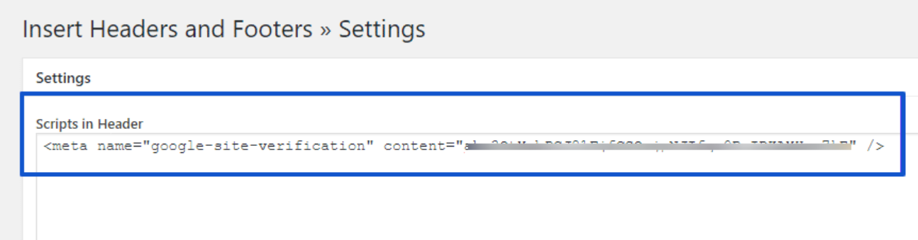- Paste the meta tag in the Scripts section of the header by going to Settings > Insert Headers and Footers.