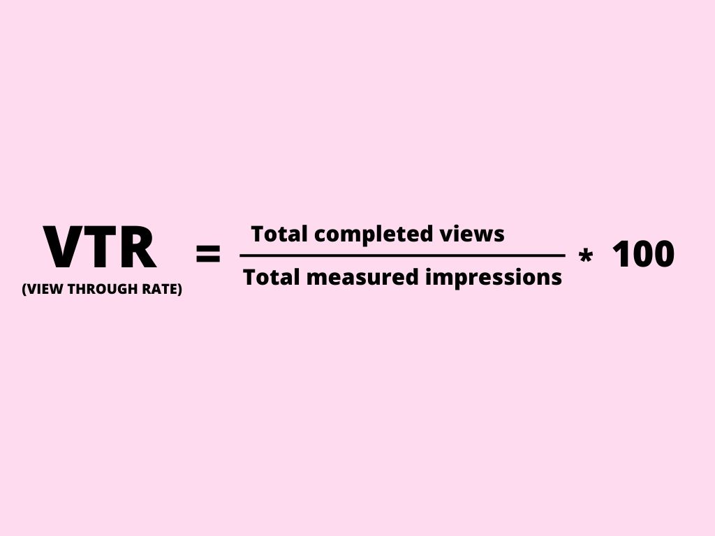 - View-through rate (VTR) is about figuring out how many people watch a whole video ad. You find it by dividing the number of people who watch the whole thing by the number of people who saw the video. Then, you multiply that by 100 to get a percentage.
