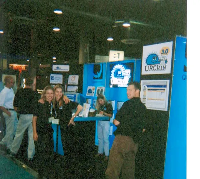 In 1997, the team behind what would become Urchin Software Corp embarked on their first-ever trade show adventure. In a creative twist, they borrowed giant blue light boxes from an underwear startup. These boxes, made of 1-inch thick particle board, were notably heavy and cumbersome, adding a unique challenge to their trade show debut.